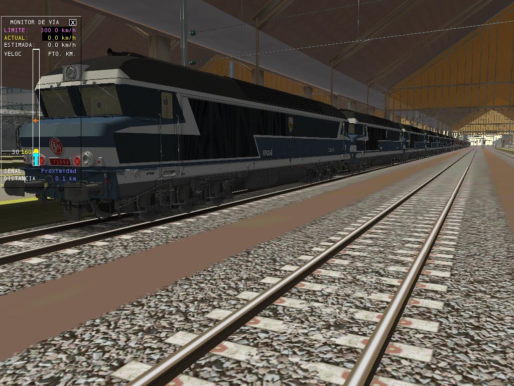 Aquí tenemos las capturas. El MsTS no se ha colgado, iba algo lentillo, pero no se apreciaba demasiado, aunque el viaje no ha sido lo suficiente largo para comprobarlo, pero en mi ordenador está clara la situación. Quizá en una ruta más cargada... Lo que he hecho es poner todas las locomotoras de cada serie de este desarrollador: las BB-15000, las BB-7200 y las CC-72000, una de cada numeración que había, con la BB-15001 en cabeza.