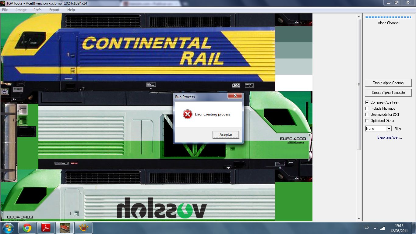 Me da error cuando intento pasar de .tga o .bmp a formato .ace