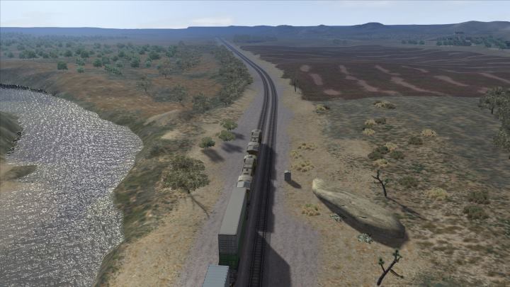 En la captura de hoy podemos ver al tren en primer plano sobre una vía levemente peraltada. Me pregunto si esta ruta se incluirá en la actualización para mostrarnos el efecto de los peraltes en el simulador...