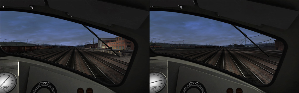 Y para más 'inri', en el NEC se junta el pan con las ganas de comer: Penn Station y 30th Street son estaciones subterraneas, los escenarios del 'Acela' son con tiempo tormentoso o muy nublado con lluvia y cada coche 'Amfleet' lleva cuatro focos de iluminación productores de una luz roja muy atractiva pero letal para los 'fps'... Manejar todas la luces de Penn Station más las del material rodante debe ser una tortura tanto para la CPU como para la GPU. Lo curioso de estas situaciones de gran carga gráfica es ver como la GPU lleva una carga del 50% y la CPU utiliza practicamente solo un nucleo...