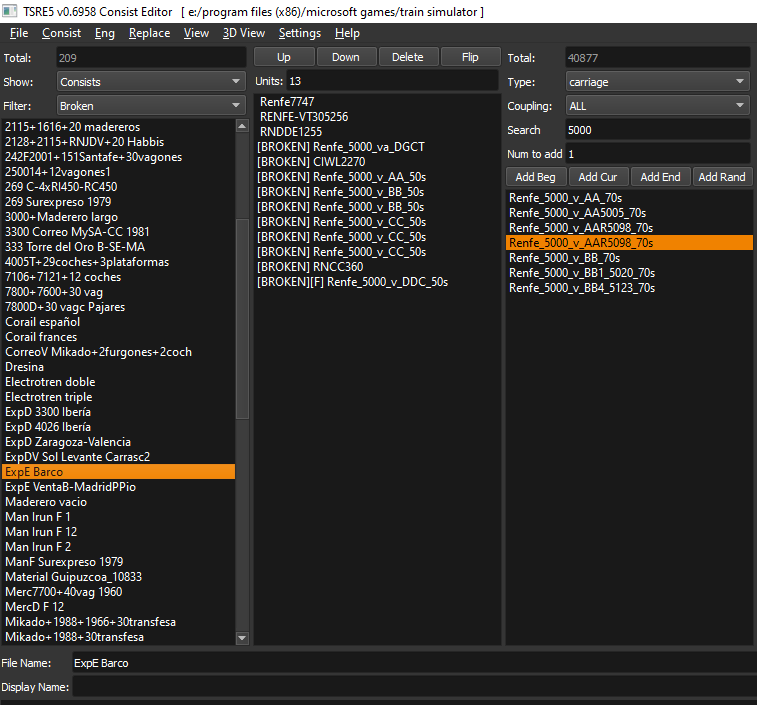 Ante todo mil felicitaciones por la maravillosa ruta 4.0 de la que he disfrutado mucho aunque sólo fuera haciendo circular trenes en solitario. En esta nueva versión 5.0 quiero usar los Consist para las actividades que se adjuntan pero tengo dudas de donde encontrar la locomotora 1988 incluida en éstos Consists: