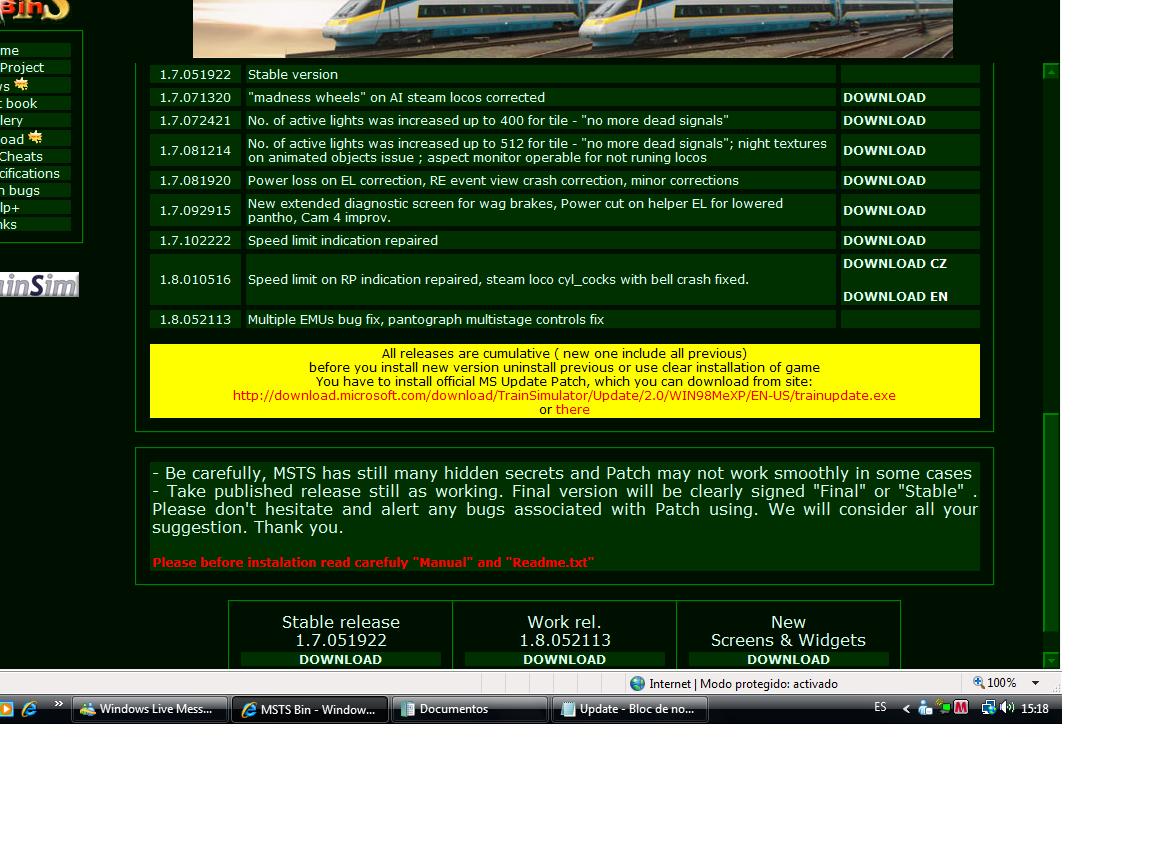hola, soy nuevo en este foro. hace tiempo que tengo instalado el simulador, pero hasta hace unos dias no me decidi a bajarme trenes y rutas. el problema es el siguiente....