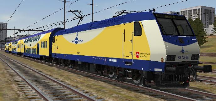 He visto que en otro hilo que han cerrado preguntabas por vagones de doble piso alemanes...Bien, yo te aconsejo este set que incluye dos locomotoras del tipo 146 y diversos coches de doble piso (incluyendo unidades pilotables) de la compañía privada alemana Metronom: