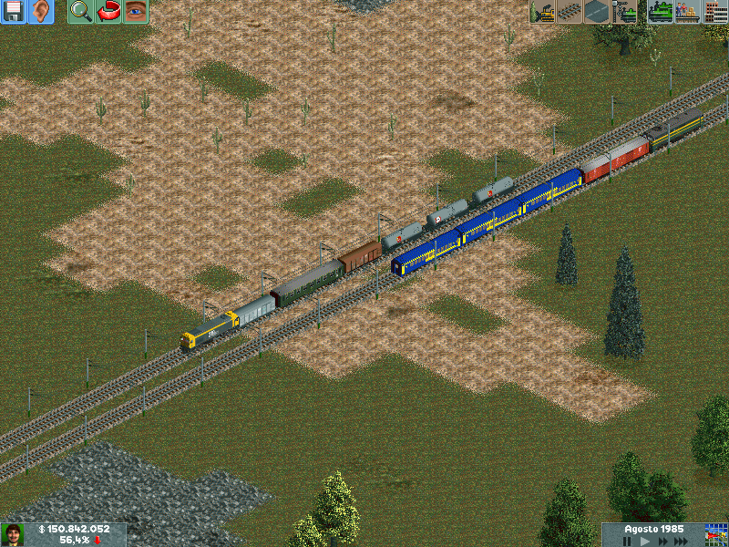 Os explico, me he creado un mapa totalmente llano, con muchas industrias. Para ver hasta donde podría llegar y a cuantos trenes podría hacer jaja. Lo empece en el año 1995 justo, con ciudades pequeñas apenas de 500 habitantes. Ahorra llevan algunas mas de 60.000 habitantes, y lógicamente las estoy encerrando para que no crezcan porque madre mía. Llevo unos 130 trenes, 14 aviones y unos 20 tranvías.