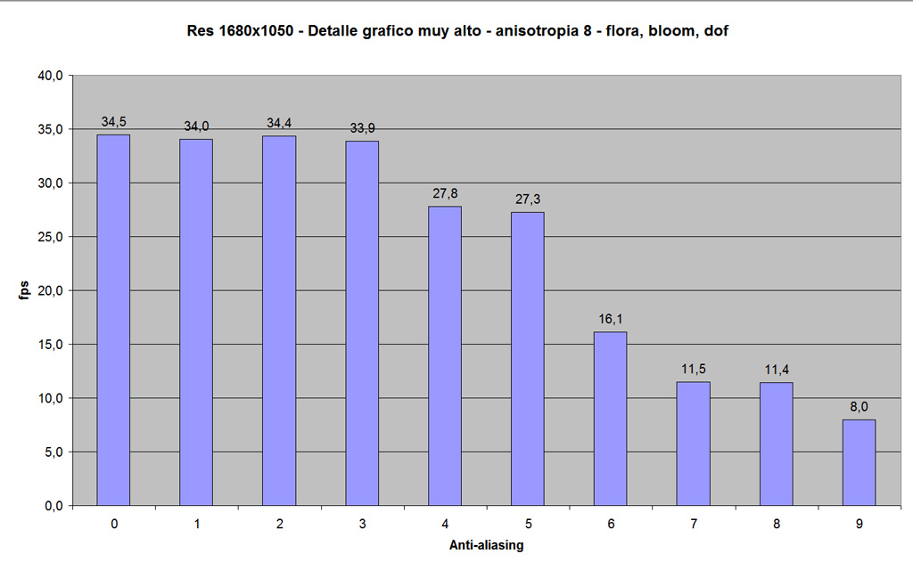 Es una constatación. Una pregunta: a 800x600, anti-aliasing a 0 y calidad media, ¿cuántos pfs consigue tu sistema?
