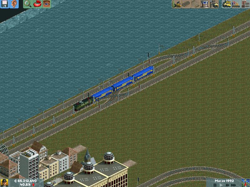 En mis redes procuro separar los trenes por velocidad, ya sea pasajeros o mercancías. Después de muuuuchas horas he conseguido dominar la IA del juego y rara es la vez que algún elemento se me despista (generalmente en obras...)--truco: hacer todo lo que se pueda en ro-ro!. Dejo unas poquitas fotos