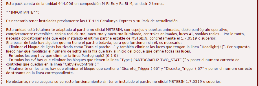 Buenas tardes amigos, esta serie de 444, bajados de tremsim, no me funcionan y en la vista cinco le falta el techo, tengo puesto el mtsbin.