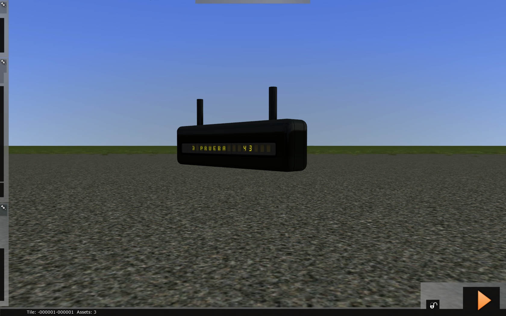 Ya he hecho el marcador electrónico, pero no he podido hacerlo como pensaba, dinámico, ya que, para variar, no se ha implementado aún en Railworks, en su dia dijeron que sería una de las cosas que vendrian con el Railworks... , habrá que esperar :(, de todas formas las letras se podrán cambiar cambiando la textura, simplemente editandolo con Photoshop. Lo bueno de hacerlo así, es que tenemos mas flexibilidad para poner las letras, la podremos poner del color que queramos, tamaño, tipo de fuente, el lugar..., etc, etc, He utilizado varias fuentes de puntos, que las incluiré en el pack ya que son gratuitas, así no hay ningún problema de copyright ni esas cosas :lol: