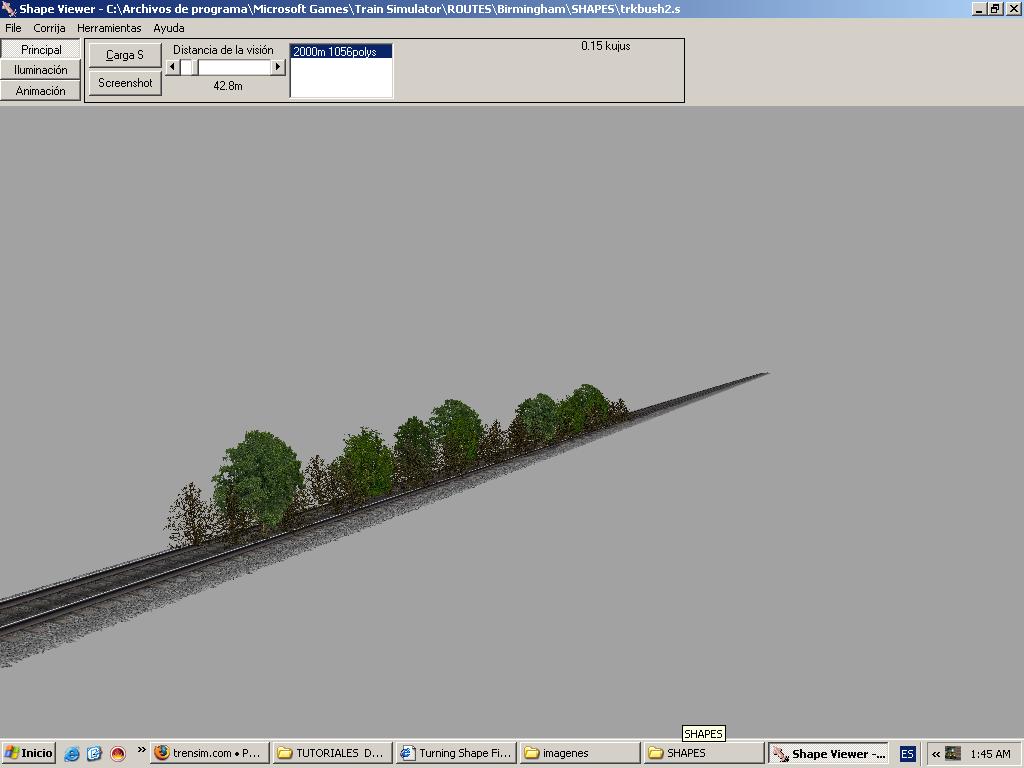 Esto es de mucha utilidad a la hora de colocacion y emplazamiento de los objetos, pero estamos hablando de modificar con el Editor de Rutas y que yo sepa solo sirve para un objeto por vez , Necesito hacer un reemplazo masivo de mas 200 objetos por kilometro y Route Rite lo hace en 1 minuto valiendose de la posicion ya existente en file World del Shape " trkbush2.s " de la segunda captura , por el shape " Talu05.s " de la primera captura este tiene solo 156 poligonos contra 1056 poligonos estos va a los lados de la via y afecta muchisimo los f.p.s.