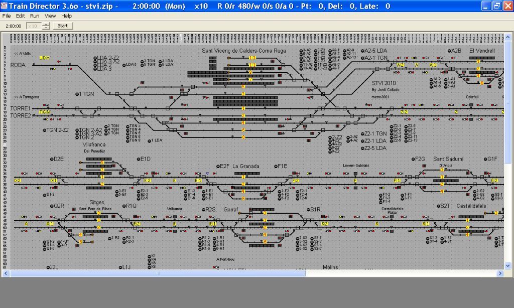 Informaros, que la simulación empieza a las 02:00 y termina a las 01:59, y nada más empezar, salen en el escenario 12 trenes en dia laborable, y 8(creo recordar) en dia festivo. Esto lo digo, para que cuando se os abra el escenario, sonará 12 veces el aviso de "entrada de tren" y no os creais que el programa se ha vuelto loco.