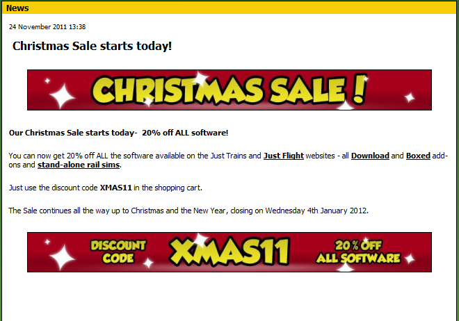 EDIT: Aprovecho este hilo para avisaros que desde el día 24 del presente mes hasta el próximo 4 de Enero, todos los addons de la web Just Trains son un 20% más baratos.