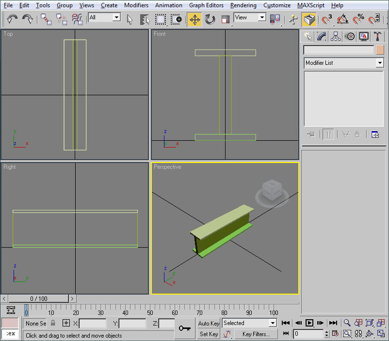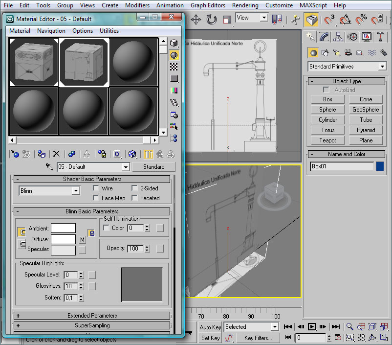 - Una vez abierto el editor UVW pincharemos en un viewport (el de perspectiva será ideal) sobre un lateral del muro.