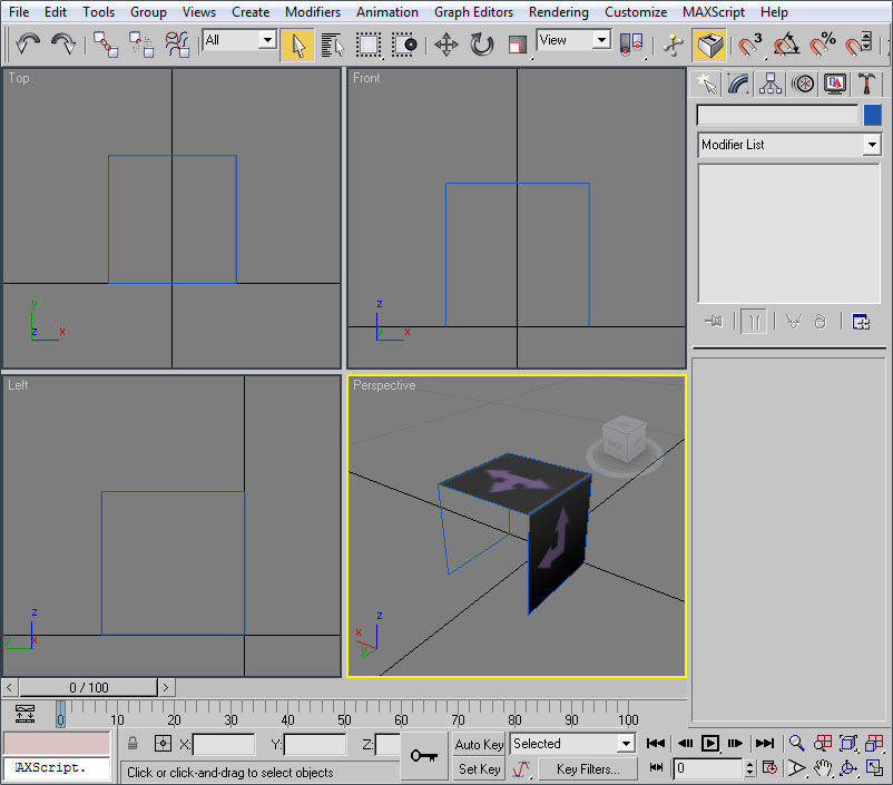 Una vez aceptado que este shader sólo trabaja en una de las caras, corregir el segundo efecto es tan sencillo como separar el polígono afectado (Dettach) y girarlo 180 grados en el eje Y, teniendo presente que al final de la operación el eje de este nuevo elemento debe estar en las coordenadas origen de la escena (0,0):