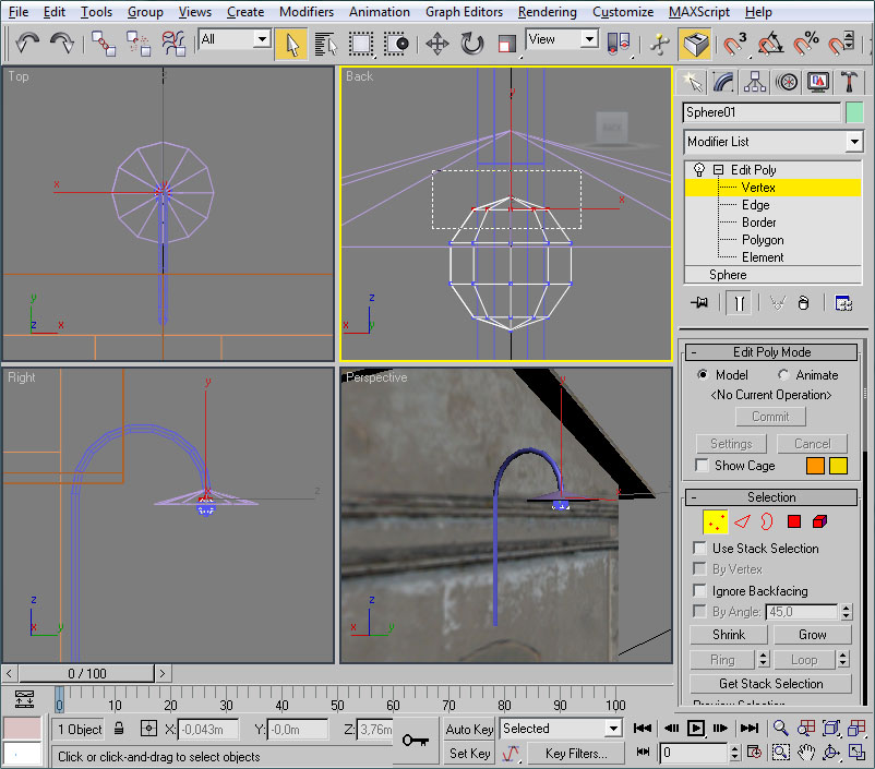 Y mediante "Select and Move" los desplazaremos hacia arriba, usando la flecha verde, hasta que se ajusten al contorno del arco de la ventana:
