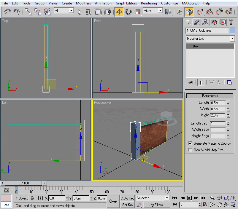 - Una vez abierto el editor UVW pincharemos en un viewport (el de perspectiva será ideal) sobre un lateral del muro.