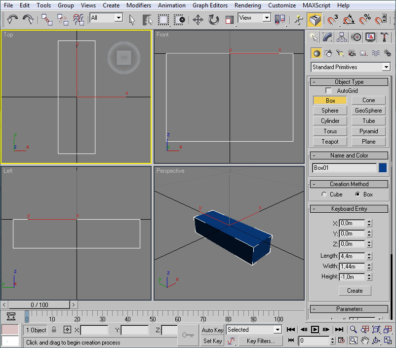 Top crearemos un cubo de las dimensiones siguientes: