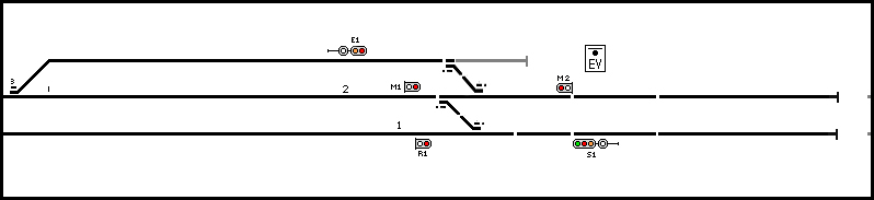 Esas dos señales de salida no van ahí, la vía de la derecha de la imagen era por dónde llegaban los trenes de Santurce y Triano, sólo tenía señal de entrada de dos focos, al final del andén de llegadas y antes del desvío a la vía de apartado había un mono bajo de maniobras que autorizaba con foco blanco el acceso a esa vía central.