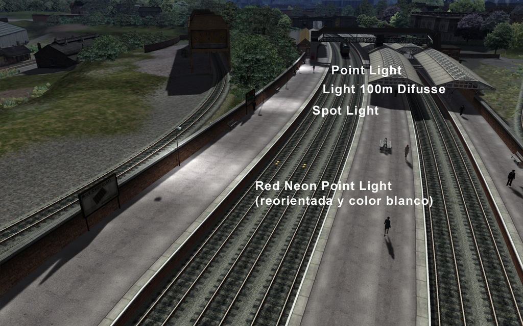 Además, para el personal que tiene instalado el pack de Armstrong Powerhouse de iluminación de estaciones es posible que ciertas estaciones aparezcan con exceso de luz (aunque se supone que el autor de la ruta ha intentado solucionar esto). Esto se debe a que AP hizo las luces como "hijos" de los assets originales. Ello implica que usar determinados assets que vienen por defecto con el simulador en otras rutas hace que aparezcan la luces también (quieras o no), así que: luces de AP + las que ha puesto el autor de la ruta = gafas de sol 8) .