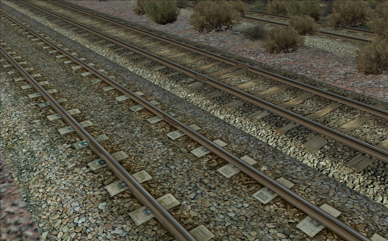 De momento las vías ya no tienen sombras extrañas, he podido mejorar las texturas, evitar los molestos parpadeos en los desvíos y adaptarlas para peraltes.