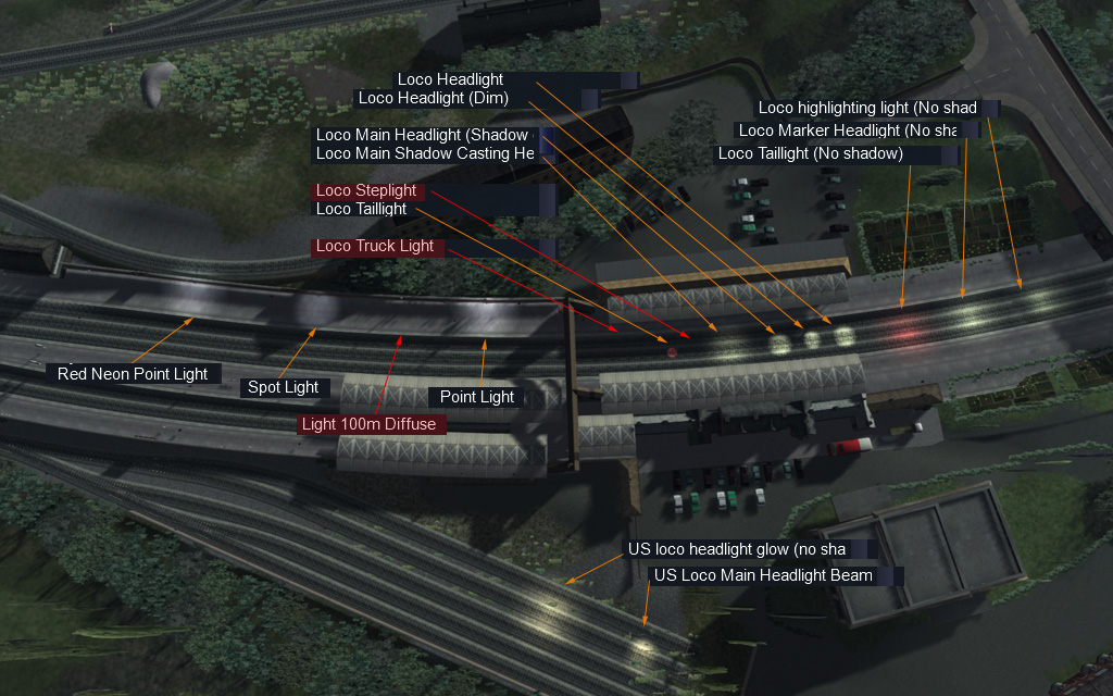 Cuando definí la luz para el material rodante que aun no había sido utilizado, creé un componente llamado 'Loco_Headlight703015', que implicaba en su nombre las características del foco de luz:
