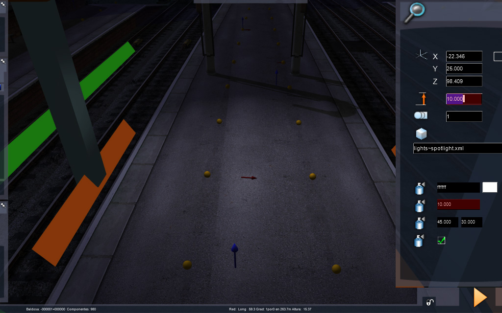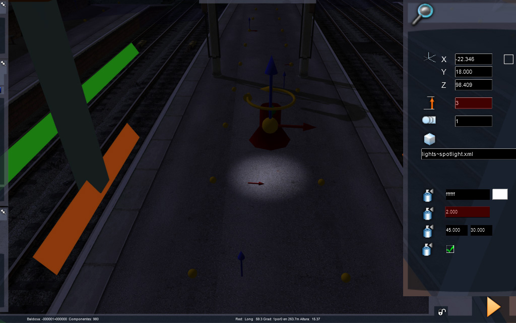 Estamos trabajando la iluminación de rutas, no de locomotoras, por lo que las luces spot las colocaremos normalmente de forma vertical: