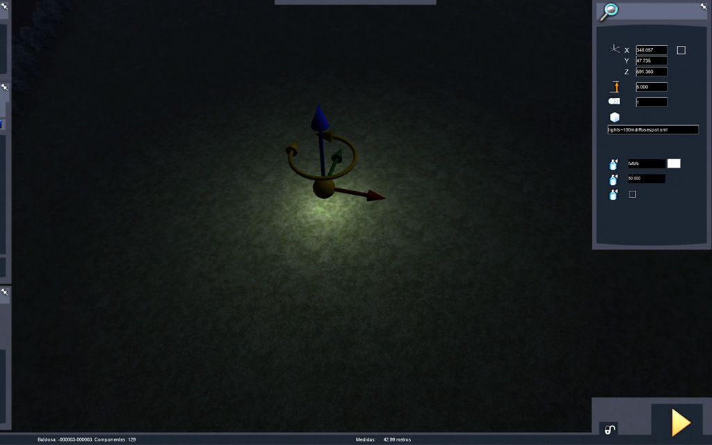 Por otra parte, señalar que el uso de los componentes 'spotlight' y 'pointlight' no reconocen el parámetro 'DayNightCycle' que le indica al componente de alumbrado si se activan siempre o solo de noche, ya que carecen de él. Usar estos dos componentes para cualquier tipo de alumbrado ofrece resultados dispares.