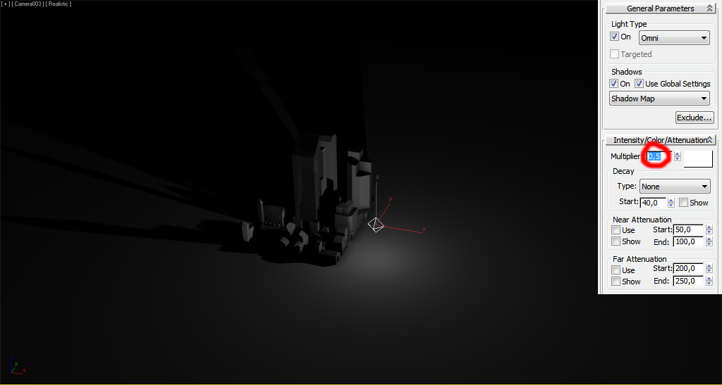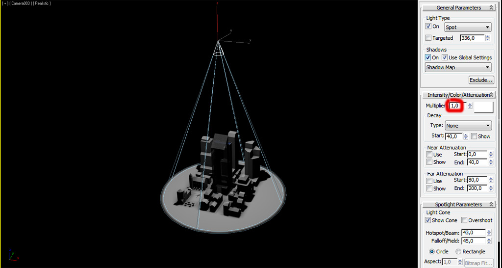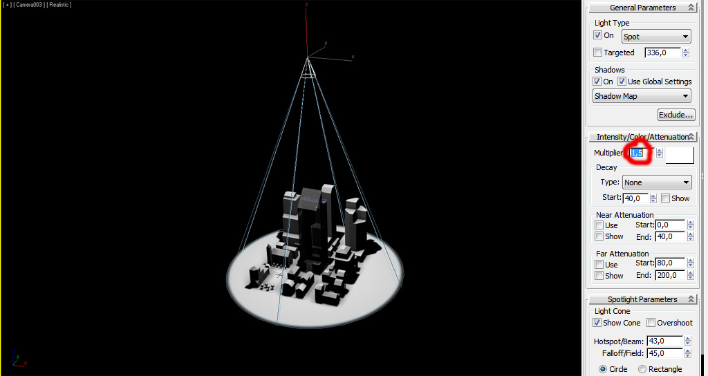 Como las luces "Point" u "Omni", podemos ajustar el multiplicador/intensidad: