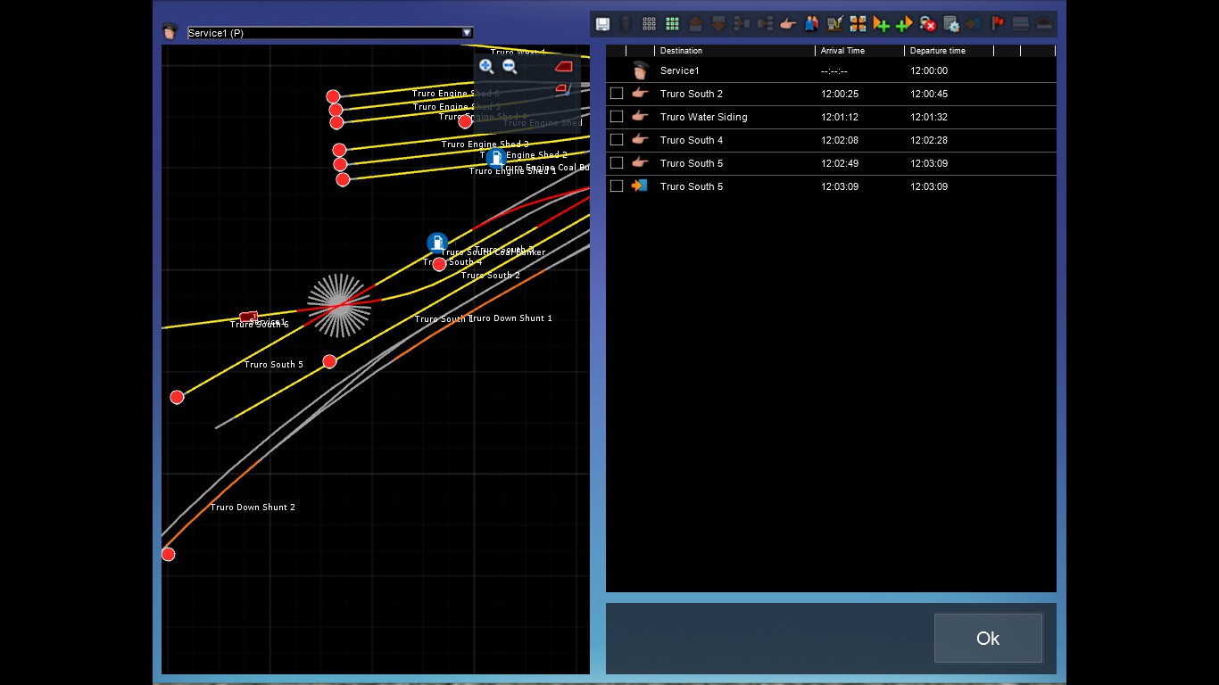 Has probado a poner la locomotora en una de las vías de depósito, y que deba empezar por irse hacia la rotonda?