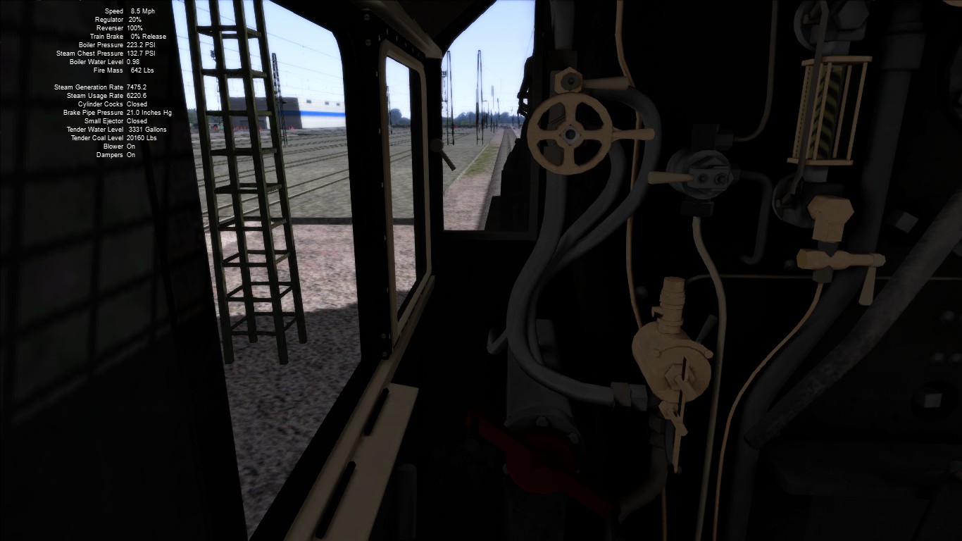Respecto a la subida marcha atrás... Hasta el momento, el valor de las presiones en los cilindros y la caldera son mi principal referencia para mover la tracción con soltura. Sin embargo, al ir marcha atrás, los valores de la presión en los cilindros me confunden: son siempre muy bajos o cero. Voy llevando la presión en los cilindros 'de oido'. Me pasa igual con las locomotoras que he conducido de esta forma. ¿Se debe a torpeza mia o es algo propio del juego?