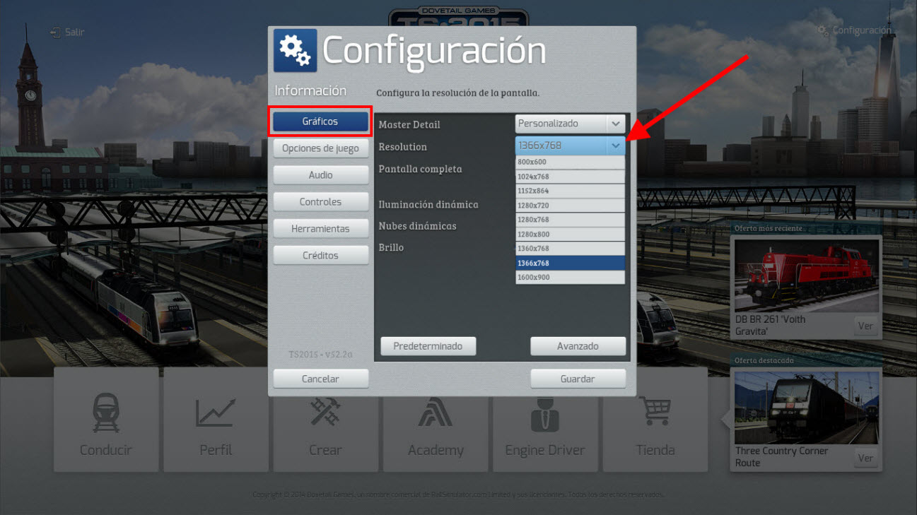 manuelcarlos escribió:Por cierto, como se modifica la resolución del TS?. Voy a utilidades y la pestaña de configuración está vacía y ya dentro del juego no encuentro nada en tal sentido, como tenía versiones anteriores.